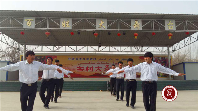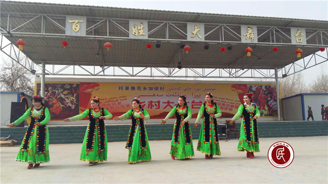 加依村文艺队、小学生们载歌载舞,舞蹈、歌曲、小品等自编自导的庆祝节目,精彩不断,充分体现出维吾尔族同胞的能歌善舞、热情欢乐,有奖问答寓民族团结、爱国主义教育与乐,大家踊跃答题。工作组孜力汗处长、郑子雯同志克服时间紧、任务重的困难,经过5天的精心指导、编排,加依村文艺队表演了融合萨玛舞、维吾尔族舞、蒙古族舞、哈萨克族舞以及塔塔尔族舞等5段舞蹈的民族大团结舞,使演出达到高潮,妇女们的掌声此起彼伏。