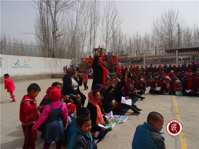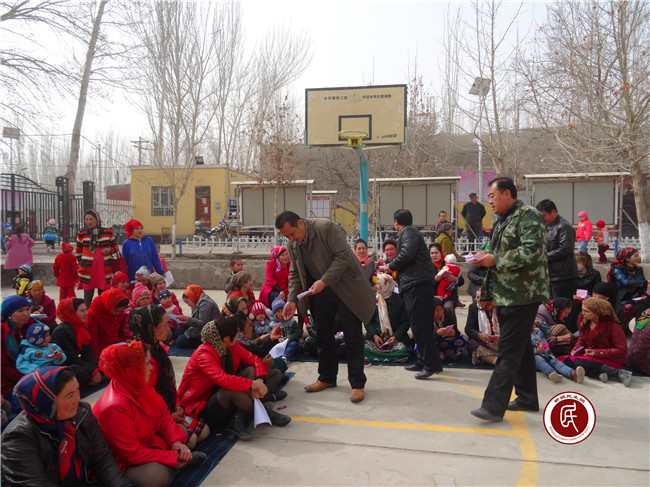 为确保此次活动取得实际,住村工作组总领队努尔卡那提·艾木如拉同志打破常规,采取边宣传教育,边以提问抢答的方式进行,对抢答正确的妇女同志给予一定的物质奖励,以提高妇女同志参与到活动中积极性,主动性。同时,引导妇女同志淡化宗教意识,远离宗教极端思想,以现实中的案例和日常需要大家了解掌握的知识开展宣传教育。如:克州阿克陶县巴仁乡暴乱恐怖事件、新疆7·5事件发生在哪年,给老百姓造成了哪些危害,民族宗教政策知识,计划生育知识,现在我们国家总书记、自治区党委书记、克州党委书记、阿克陶县党委书记都是“谁”等等。妇女们在轻松愉快中,争先恐后的进行举手抢答,掌声伴随着活动的进程起伏不断,笑声在村委大院里欢乐响起。