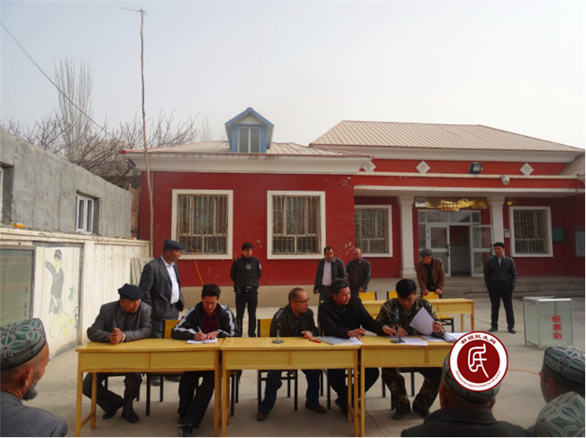 (图为克州人社局住9村工作组与乡领导对选举工作进行安排部署)