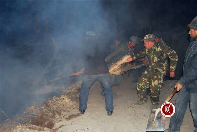 新疆民生网讯(通讯员 崔蕾苏)3月8日晚,阿克陶县玉麦乡英阿依玛克村铁路涵洞旁的树林突然发生火灾,住村工作组在接到消息后奔赴现场奋力扑救。