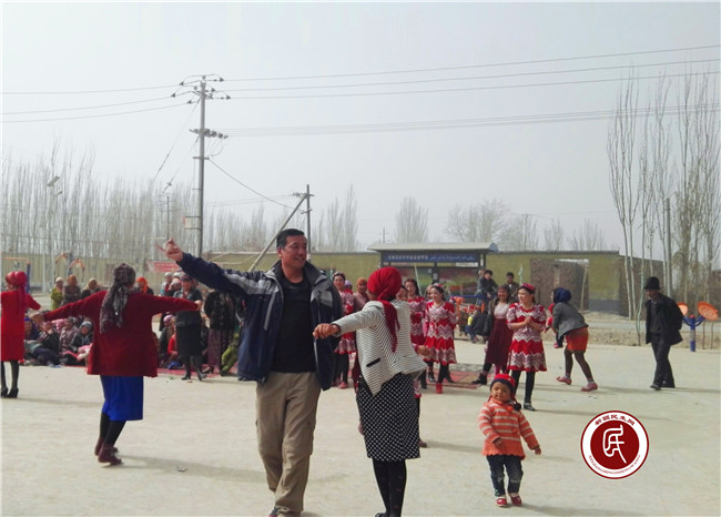 随着主持人一声“比赛开始”,村民趣味体育竞赛开始了,这些平时在家带孩子、做家务的农家妇女纷纷上场展示自己的风采,她们踊跃参加拔河、踩气球、端乒乓球跑、画鼻子、抢凳子等比赛活动,还带来了自编自演的舞蹈,现场气氛活跃,歌声、笑声不断,洋溢着节日的喜庆。在活动即将结束时,一位胡子花白的维吾尔族老大爷给我们带来了“意外之喜”,他主动要求上台为大家演唱一首自己填词的歌曲——《党的恩情如父母》,歌词中唱到:“世上只有父母好,党的恩情比父母还要深,我要把这些告诉儿孙们,让他们紧跟共产党。共产党亚克西!”动情的歌声引来台下阵阵热烈的掌声。活动还表彰了村里一批“好媳妇、好婆婆”,工作组鼓励她们坚持“自尊、自信、自立、自强,用勤劳的双手,尽快脱贫致富,建设好美丽乡村”。