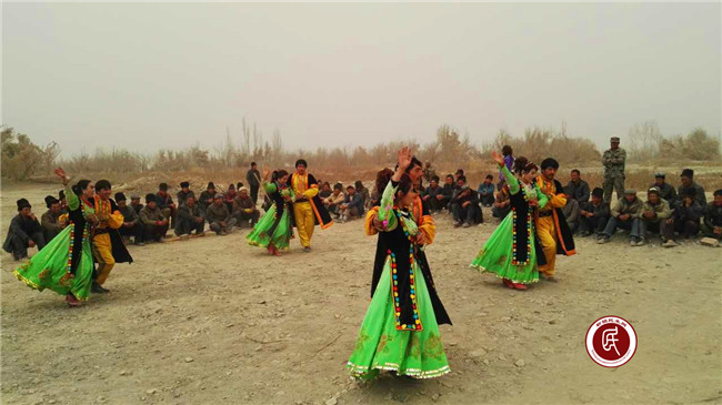 同志们不仅给村民们送来了物质食粮,还带来了精神快乐。午饭后,加依村的文艺队青年们,为劳动村民们献上了精彩的文艺表演,工作组还与村民们跳起了欢乐的麦西来普,工地上洋溢着亲情欢乐、民族团结的热闹气氛。村民们非常激动,纷纷感谢工作组想着他们,惦记着他们。