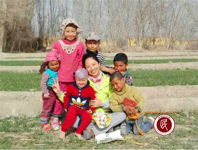 劳动之余,住村工作组成员杨喻淋在和小朋友的玩耍中,吸引了许多小朋友加入。大家凑在一起,一会儿说维语,一会儿说汉语,一会儿学唱维语歌,一会儿又学唱汉语小苹果,小朋友们都高兴得合不拢嘴。大家还一起大声朗读维语课文,小朋友们看着这位会说双语的汉族阿姨都露出了好奇羡慕的眼光。此时,住村工作组在田间地头开办的双语幼儿园也同步开班啦!