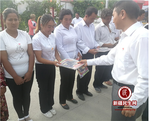 新疆民生网( 徐其伟)为提高群众的国语知识,增强群众国语交流,方便外出工作就业。新疆地矿局第八地质大队驻阔纳协海尔村工作队采购了一批国语教材,发到400名村民手中,来提高村民的国语水平,充实群众业余生活,促进社会和谐发展。