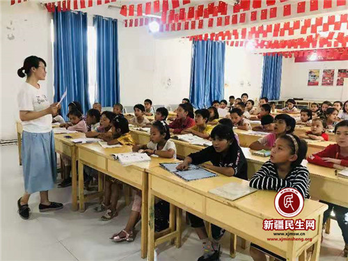 授课教师吐泥沙·马木提说道:“一方面,我给孩子们教国语,另一方面,给他们辅导暑假作业。在烈日炎炎下,对老师和学生都是一种考验,心里一遍遍告诉自己要打起精神,才能更好地给孩子们讲授知识。于是,我想方设法地通过各种游戏调动孩子们,让他们在玩中有学,在学中又乐趣无穷,就这样,短短几天,孩子们的口语表达能力有了一定的提升,此时的我别提有多高兴了。”