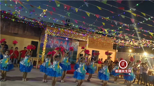 为吸引更多村民,夜市里还搭建了一个精致的“百姓大舞台”。夜幕降临彩灯闪烁,演出队的孩子们为村民们奉上精彩的歌舞表演,前来夜市的村民越来越多,十几张桌子坐得满满的。大家边品尝美食边欣赏演出,开心地说着、笑着,不亦乐乎。