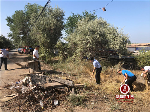 新疆民生网(张玉华、赵欢)7月29日,骄阳似火、烈日如炽,阜康市卫健委35名干部职工来到工作队驻地——城关镇头工中心村,与驻村工作队、村“两委”携手开展农村人居环境整治工作。