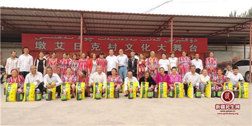 8月10日-11日,在古尔邦节来临之际,长城国兴金融租赁有限公司驻拜城县康其乡墩艾日克村工作队给全村600户村民送去了1200套墙纸贴画,为改居后的房屋增添喜气,并走访慰问了32户困难群众和40位小学生,为他们送去了大米、清油和学习用品,还表彰了7位优秀无职党员,以激励更多无职党员发挥先锋模范作用。在“民族团结一家亲”联谊活动中,返乡学生们表演了具有青春和时代气息的现代舞蹈,大学生亚生·赛买提为大家动情的演唱了一首《和谐新疆》,赢得了经久不息的掌声。他说:“假期回来非常惊喜,村里完全变了模样,像一个美丽的公园,人们的精神面貌也变得积极向上,这让我更加坚定了要好好学习,毕业后为自己的家乡贡献的一份力量,以回报党、回报社会。”