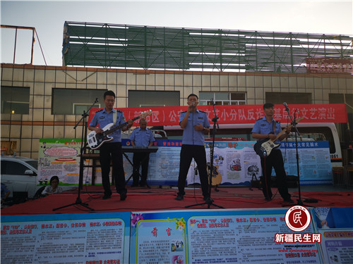 新疆民生网(赵棋)为进一步提高辖区居民防电信诈骗、反电信诈骗意识。2019年8月9日晚20:00点,辖区美食广场也渐渐变的凉爽。乌鲁木齐市自然资源局驻高新区(新市区)二工乡湖州路西社区“访惠聚”工作队组织辖区居民400余人在管辖区内的美食广场邀请高新区(新市区)公安分局文艺小分队开展以“反电信诈骗”及“民族团结一家亲”为主题的基层文艺宣传活动。为活跃现场气氛,工作队购买了100余件实用小奖品,以知识抢答等多种形式发放给观众。