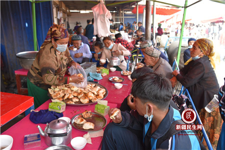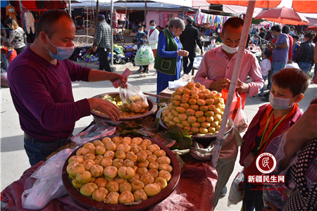 新疆民生网(谭康)10月5日,国庆假日,也是伽师县和夏阿瓦提镇的“巴扎日”,人们带着喜悦享受着美食的快乐,沉浸在节日的喜庆当中。