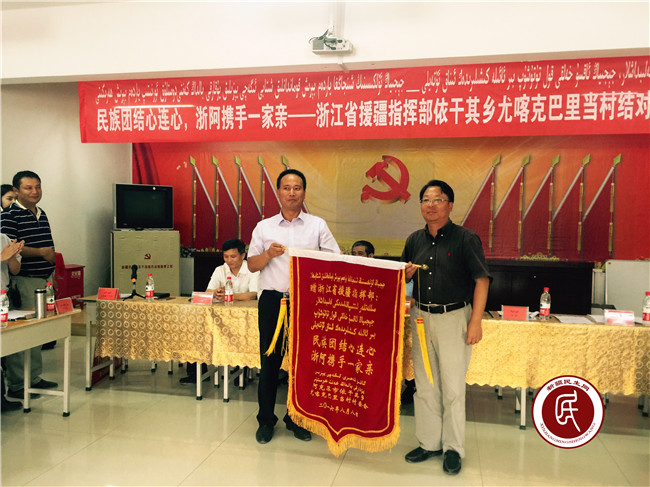 新疆民生网讯 (通讯员 岳霞)为了让脱贫攻坚致富奔小康精神落到实处,让民族团结深入人心,帮助阿克苏市依干其乡尤喀克巴里当村贫困农民甩掉贫困帽子,过上幸福美好的生活,2016年8月8日,浙江省援疆指挥部指挥长、党委书记、党委副书记徐纪平,副指挥长、党委副书记、一师党委常委、副师长劳泓,副指挥长、党委委员、地区行署副专员诸葛建,浙江省委第八巡视组组长陈松根、副组长宣新瑞等动员社会各方面力量参与扶贫开发工作,亲自带着人、财、物和一片热忱来到阿克苏市依干其乡尤喀克巴里当村,致力结对帮扶脱贫。
