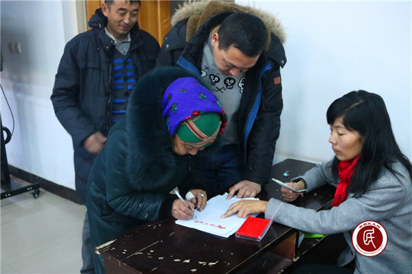 (图为该乡孤寡老人签字领取帮扶资金)
