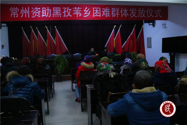 (图为常州资助黑孜苇乡困难群体发放仪式现场)